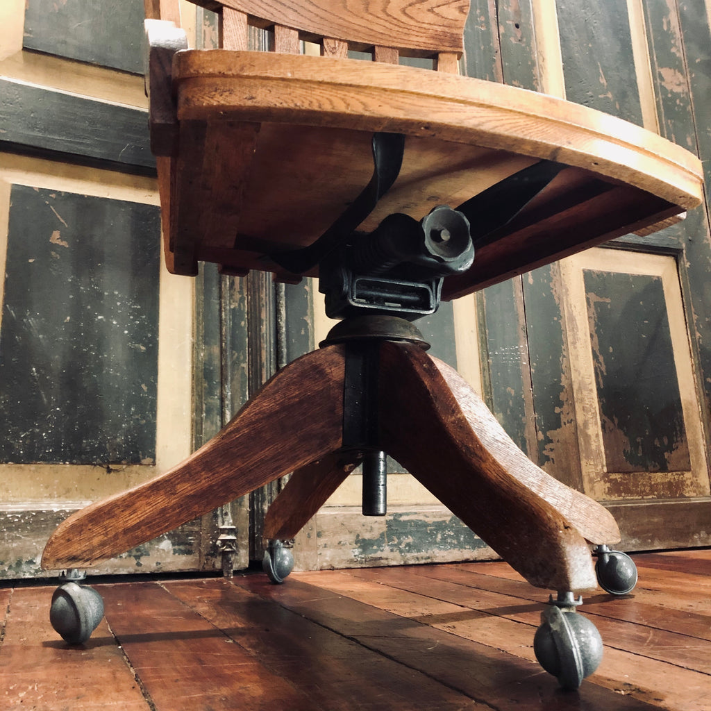 DESCRIPTION: This swivelling success of a chair was often sold at mortgagee auctions across America, which ironically were previously owned by not so successful bankers.
