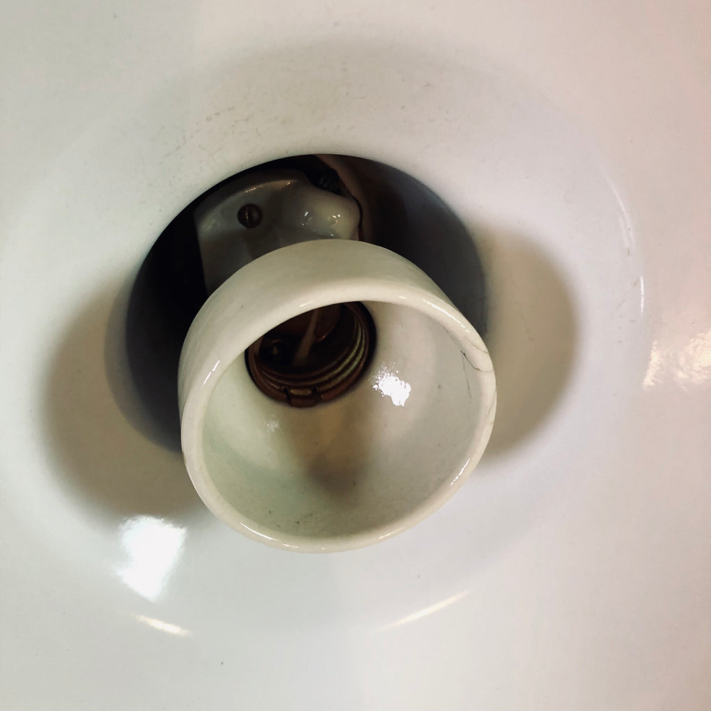 NOTE: This is fitted with its original porcelain fitting E27 and is compatible with LED. Vintage grey cord with an adjustable drop of 1.2m and a black ceiling rose are supplied.